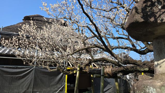 荒尾市荒尾の宮崎兄弟生家の梅が見頃を迎えています。1913(大正2)年3月19日、孫文が辛亥革命成功のお礼のために再来した際、宮崎家の家族と共に集合写真を撮った背景にあるのがこの梅の木である。樹齢250年~300年の白梅で、宮崎家の遠祖が菅原道真だというゆかりから、大宰府より移し植えられたと伝わる。歴史を今に伝える貴重な宮崎兄弟生家の宝物である。(案内板を引用)
