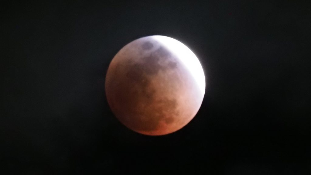 2026年3月3日、「桃の節句」の夜、玉名でも皆既月食を見ることができました。全国的に天気が思わしくない中で、皆既月食を見ることができたのはラッキーでした。部分食が始まる頃は雲に覆われ、月そのものを見ることはできませんでしたが、皆既食が始まる頃には雲もなくなり、終わりまでほぼ見ることができました。再び部分食が始まると、また雲に覆われてしまいました。一眼レフカメラで撮影。